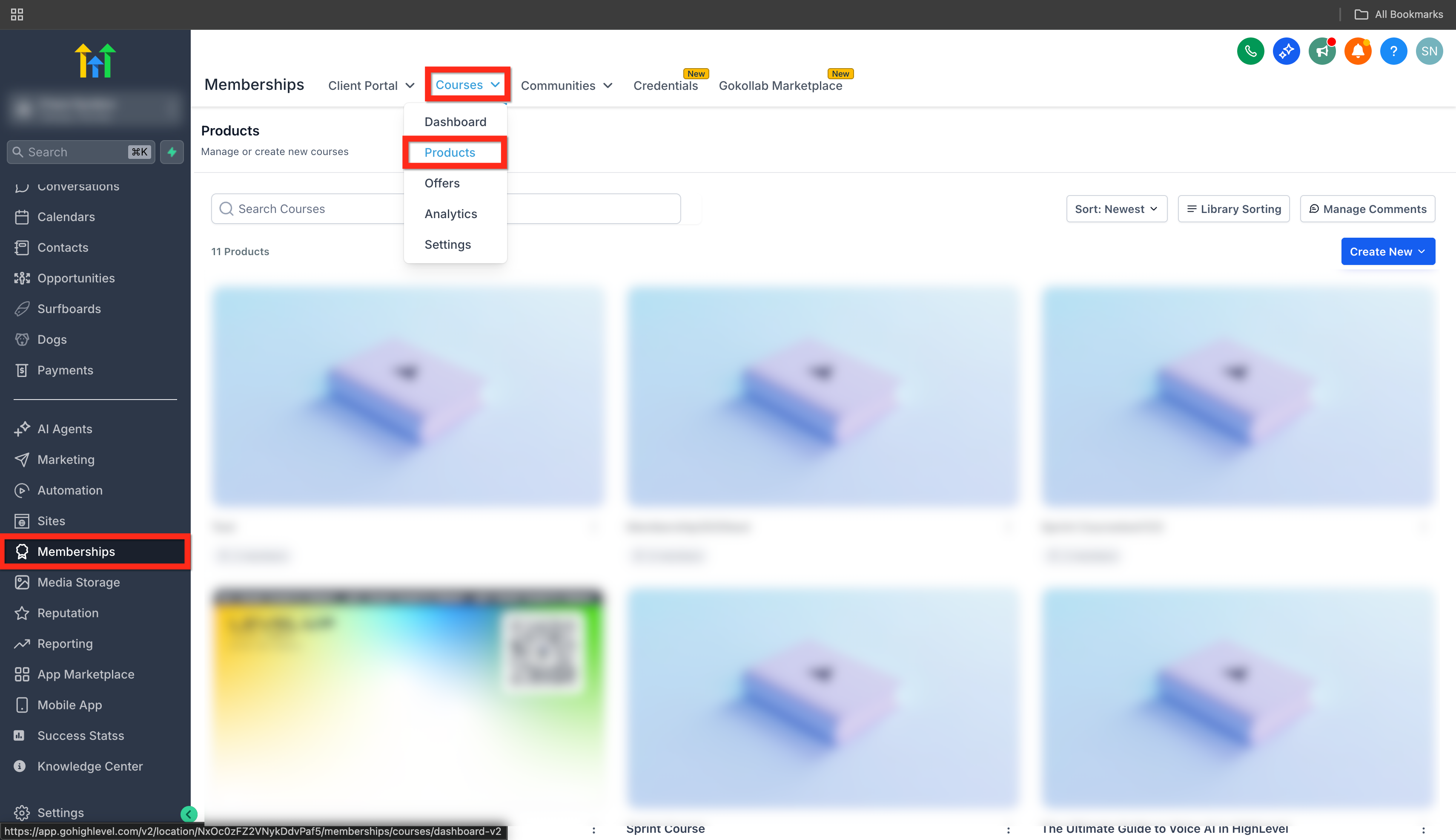 1. Go to Memberships > Courses > Products.