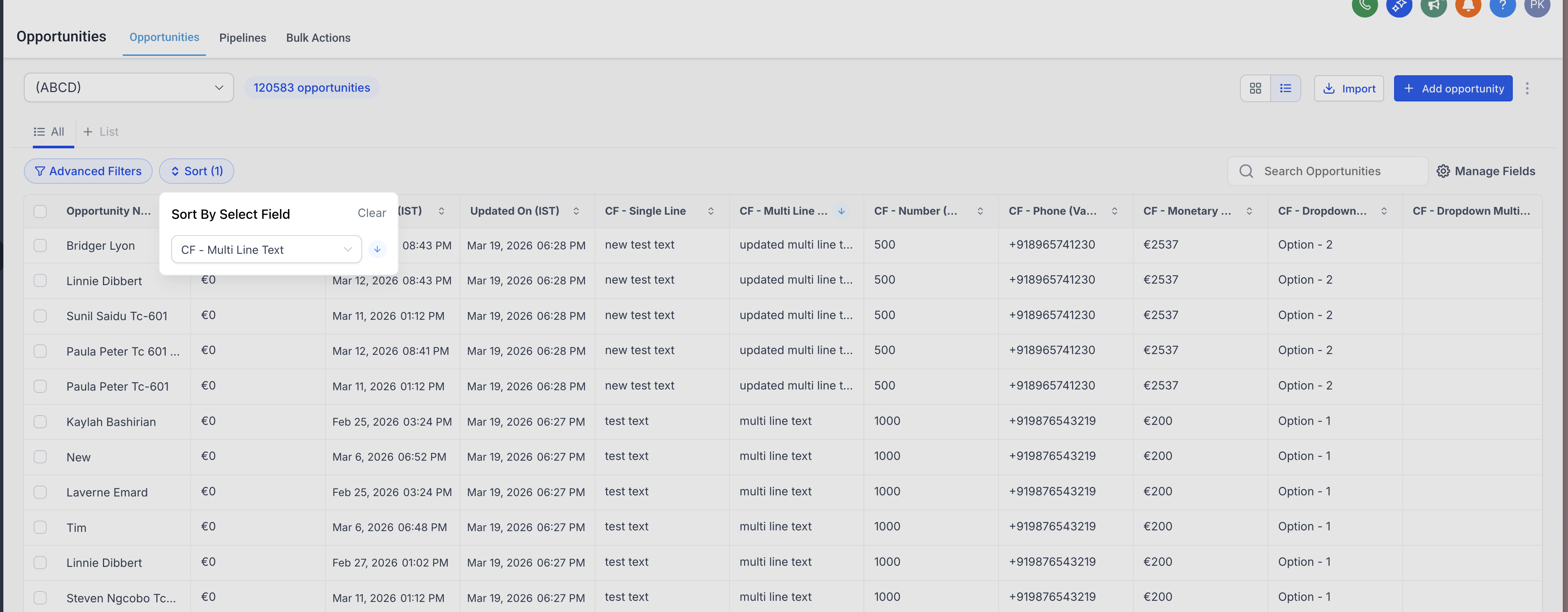 - Your opportunities will be instantly reordered based on the selected field