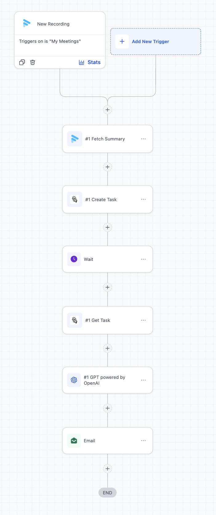 - Select a trigger or action (e.g., New Recording, Fetch Transcript)