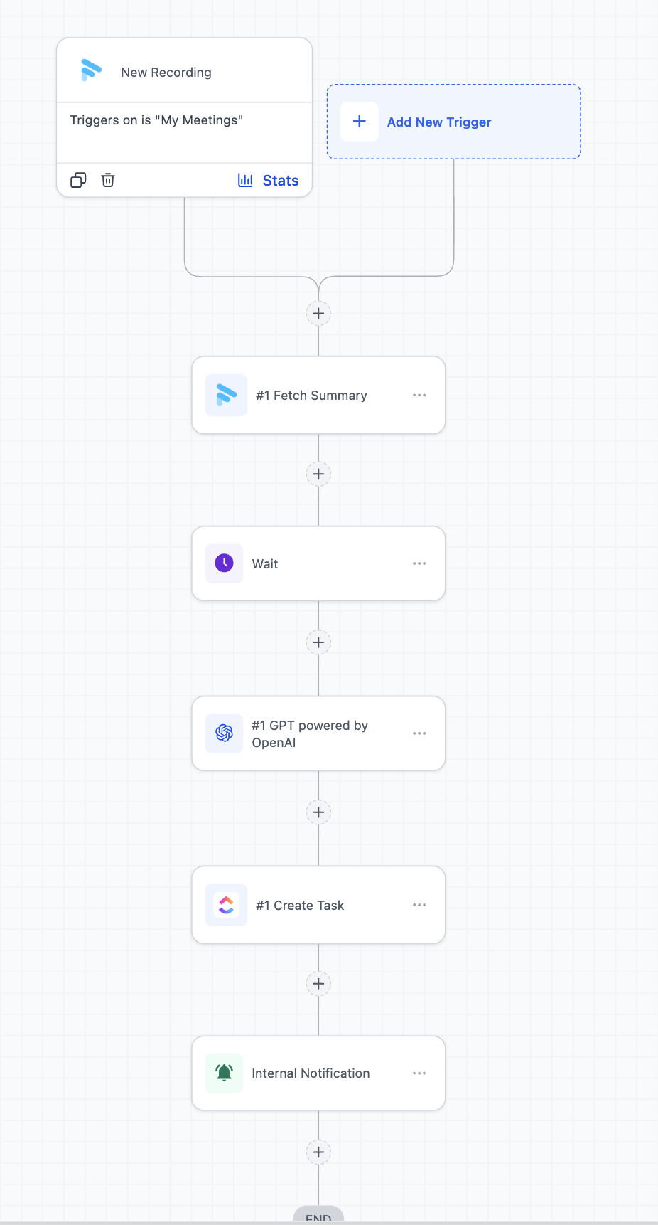 - The New Recording trigger fires when a meeting is recorded and processed