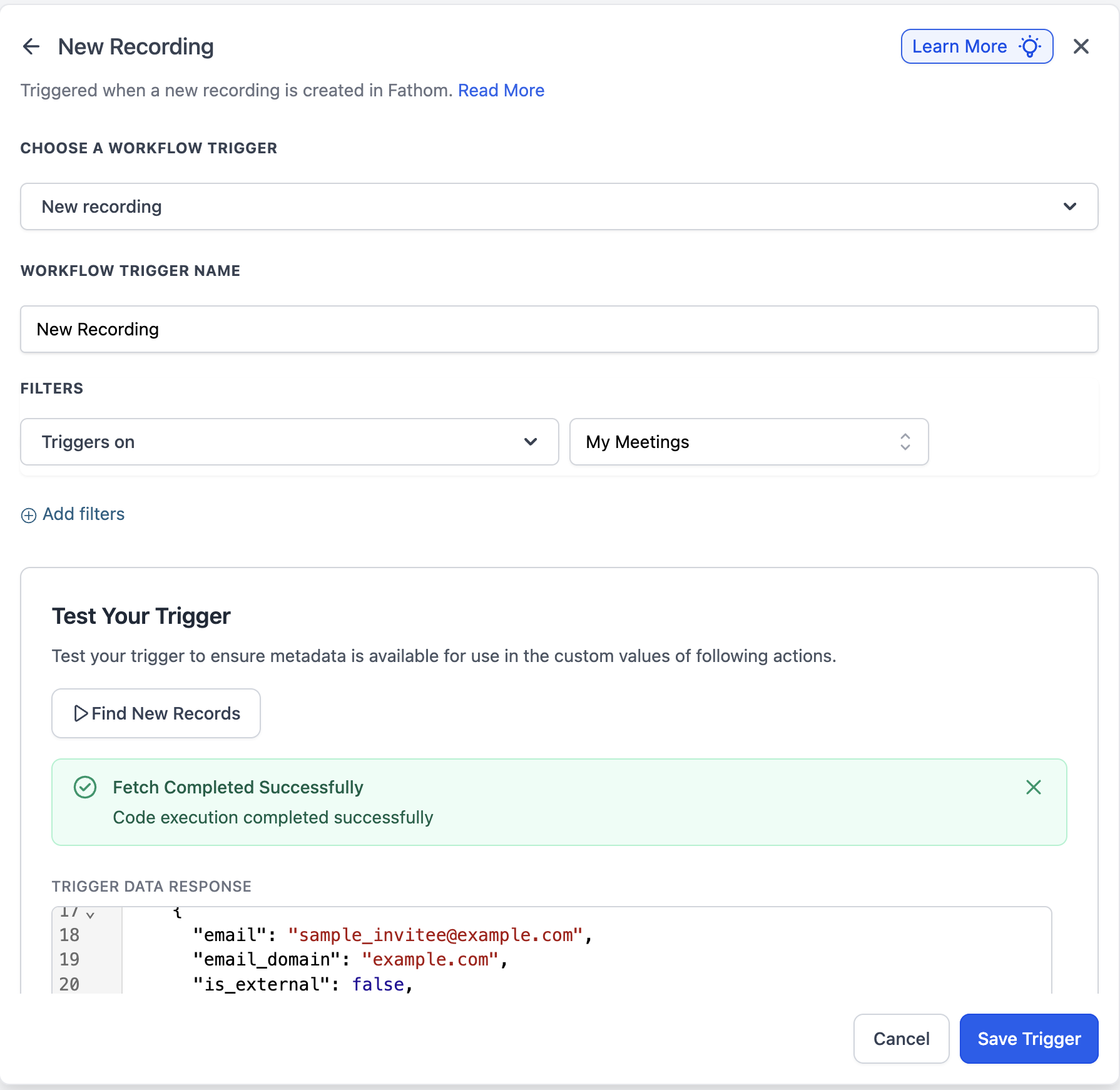 Triggers when a new meeting recording is available in Fathom.