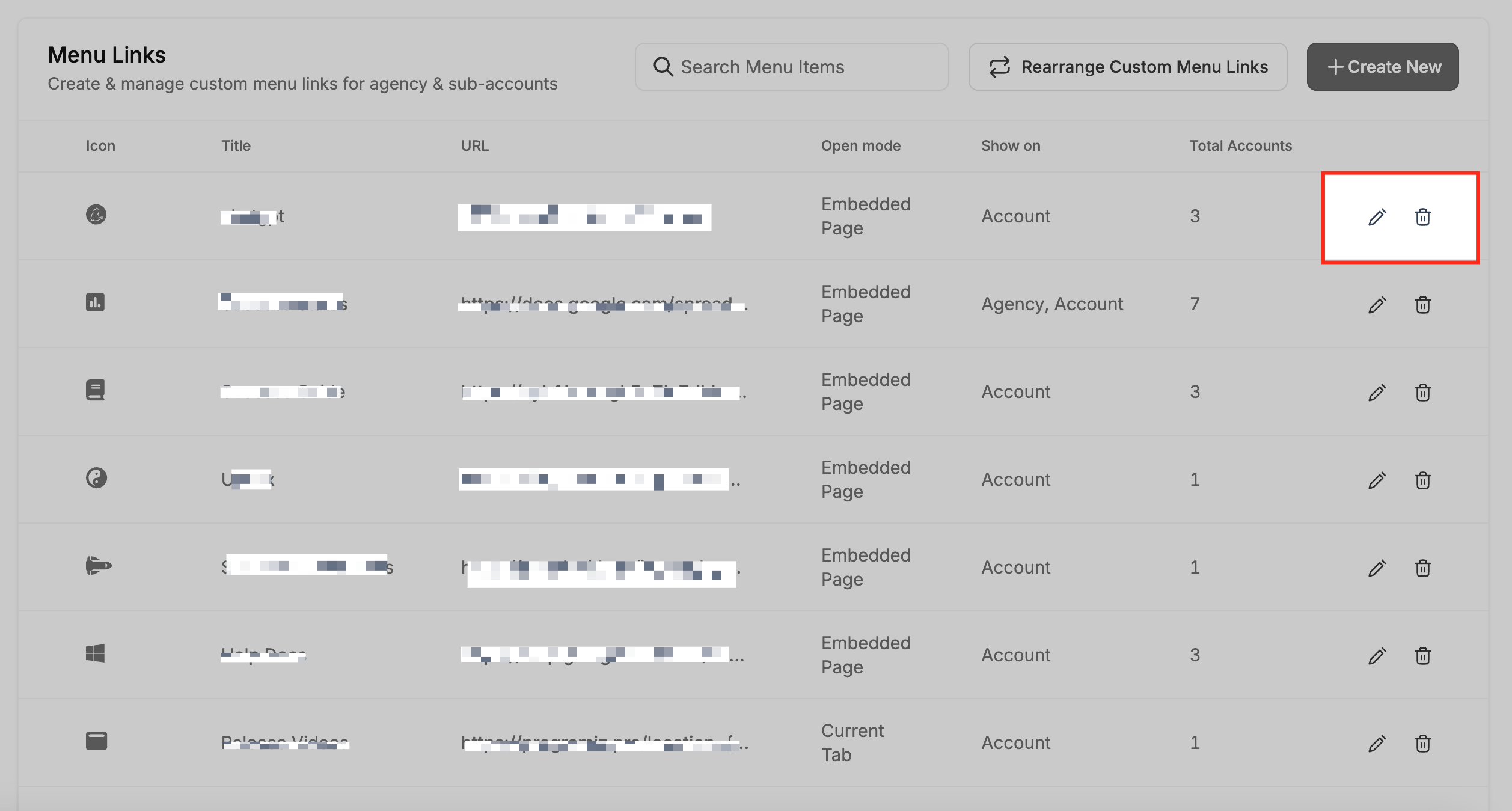 Make quick updates or remove outdated custom menu links as your agency evolves. This section shows you how to keep your sidebar navigation clean and relevant by editing or deleting existing links.