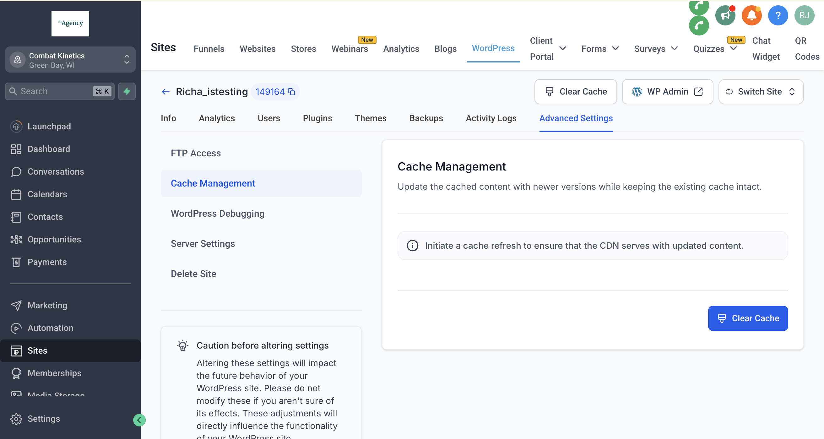 Refresh Cache for the WordPress Site