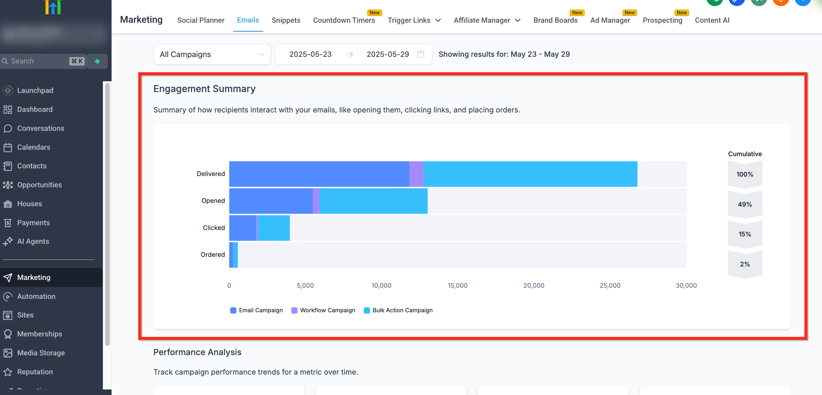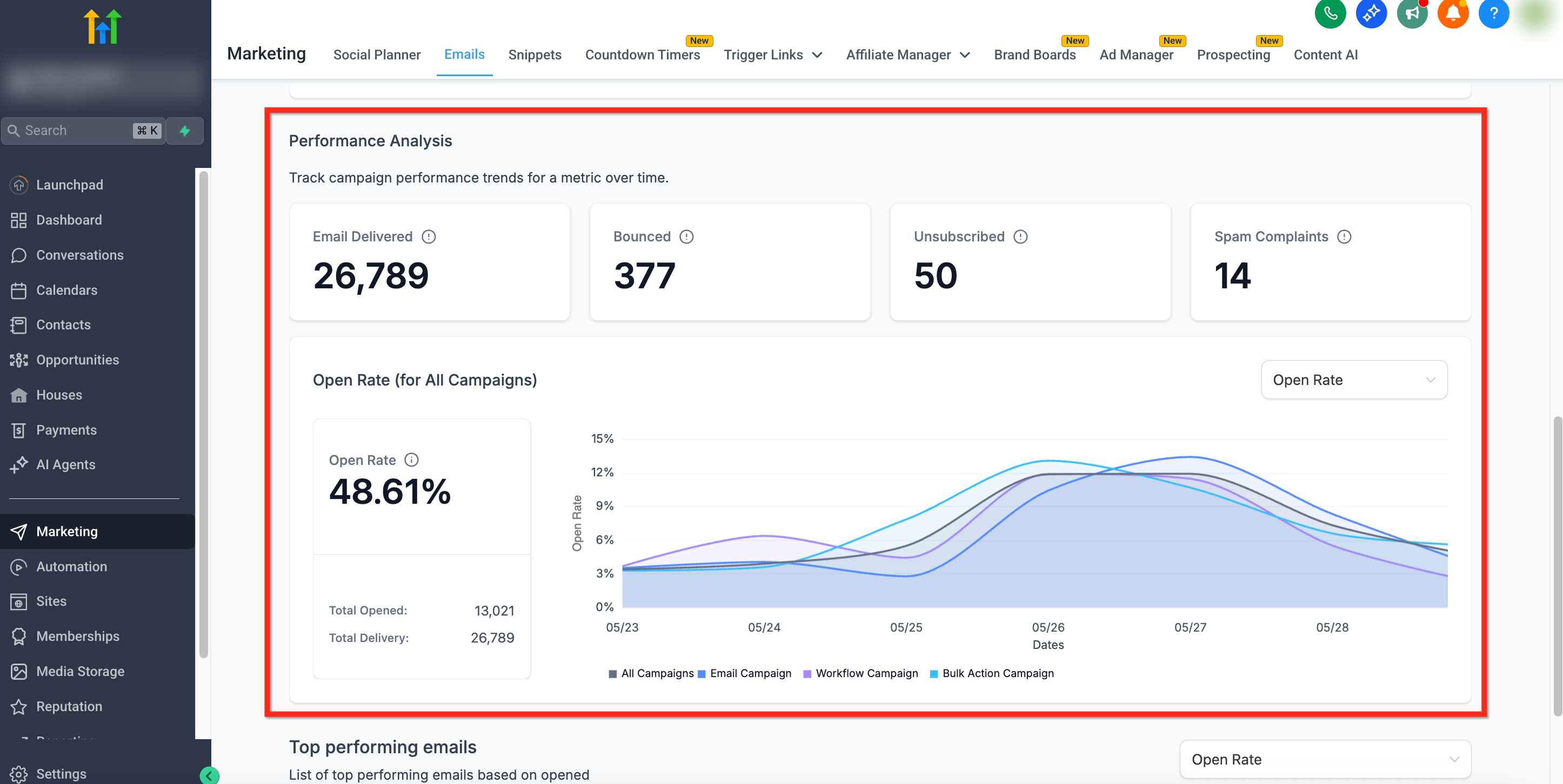 HighLevel’s Email Statistics help you track how recipients interact with your emails across campaigns, workflows, and bulk actions. These insights let you optimize deliverability, improve content strategy, and maintain good sender reputation.