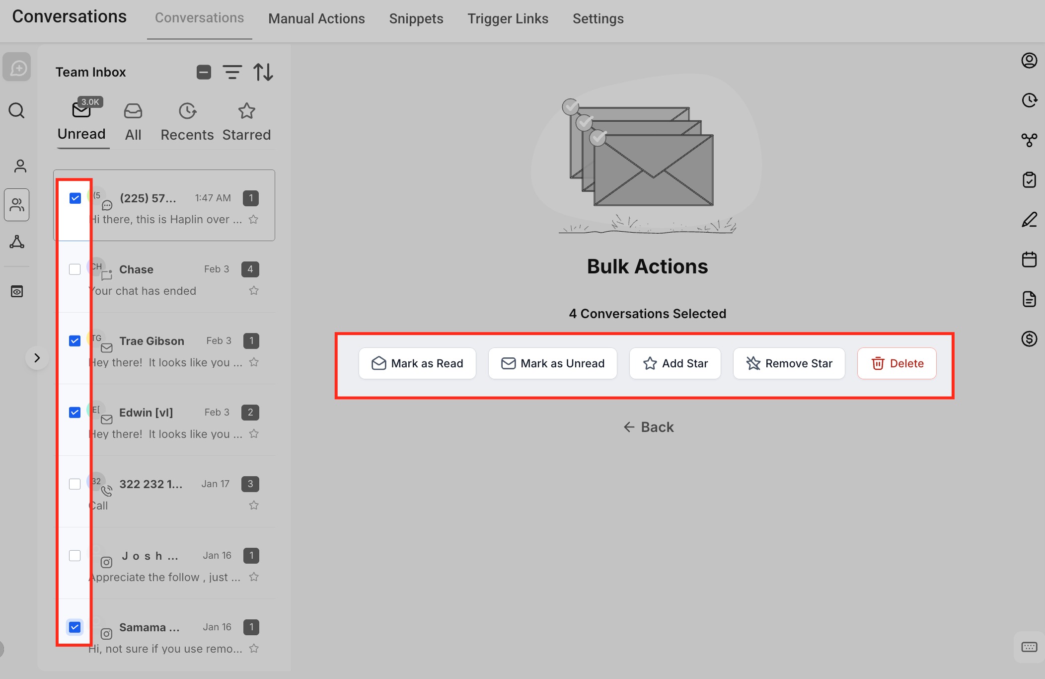 - Mark as Unread: Returns conversations to the unread state.