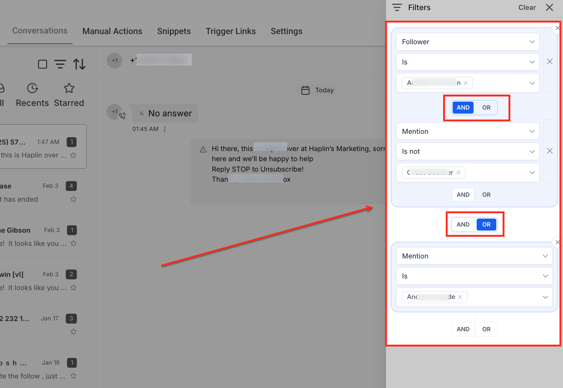 Filters conversations based on whether the most recent outbound message was sent Manually by a user or Automated through workflows or campaigns. This is useful for tracking human engagement versus automation.