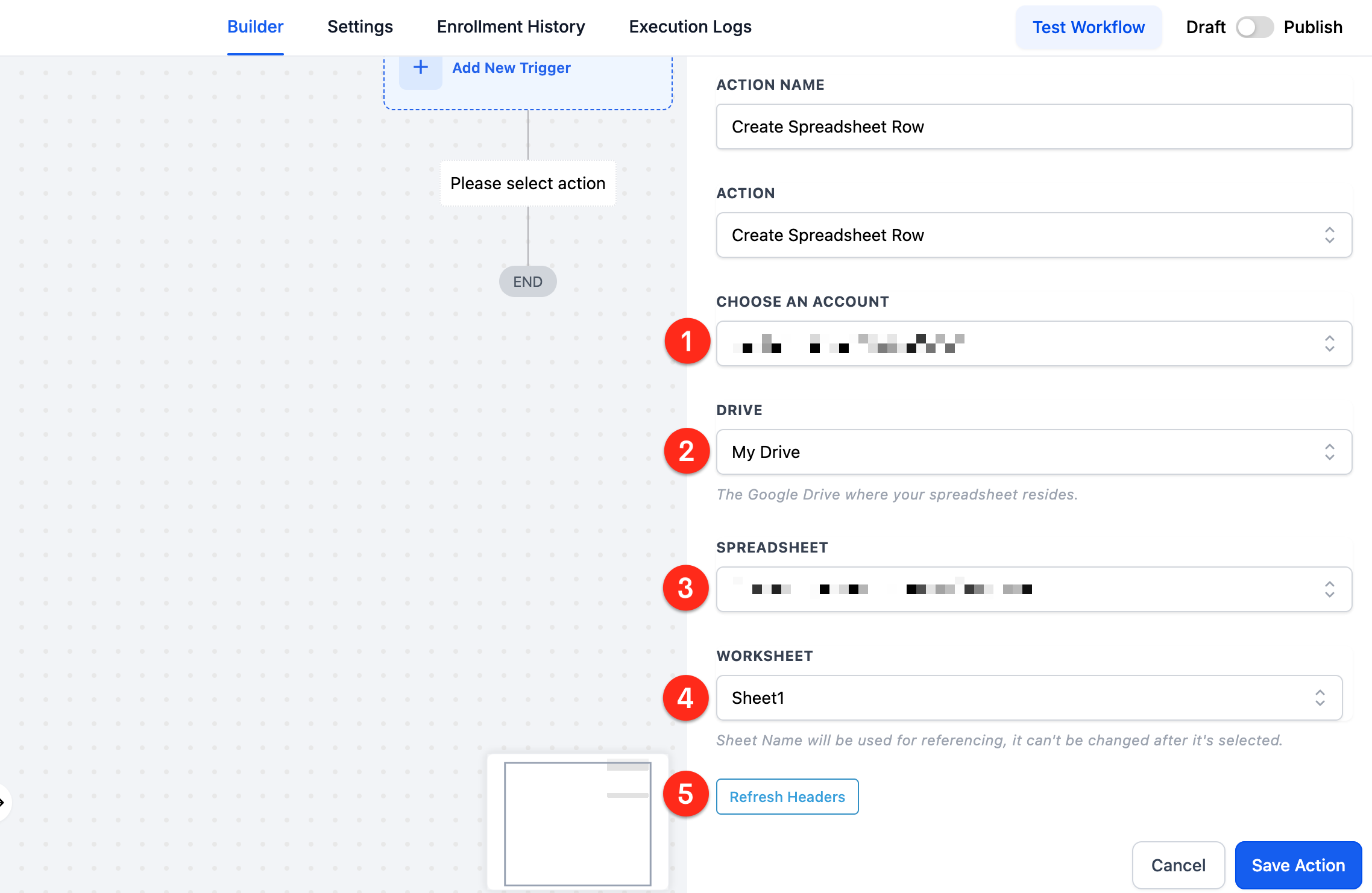 In the Workflow Builder this is called an Action and in the Action settings the functions are also called Actions. We will refer to sub-Actions like Create Spreadsheet Row as functions.Key Benefits of Google Sheets Integration