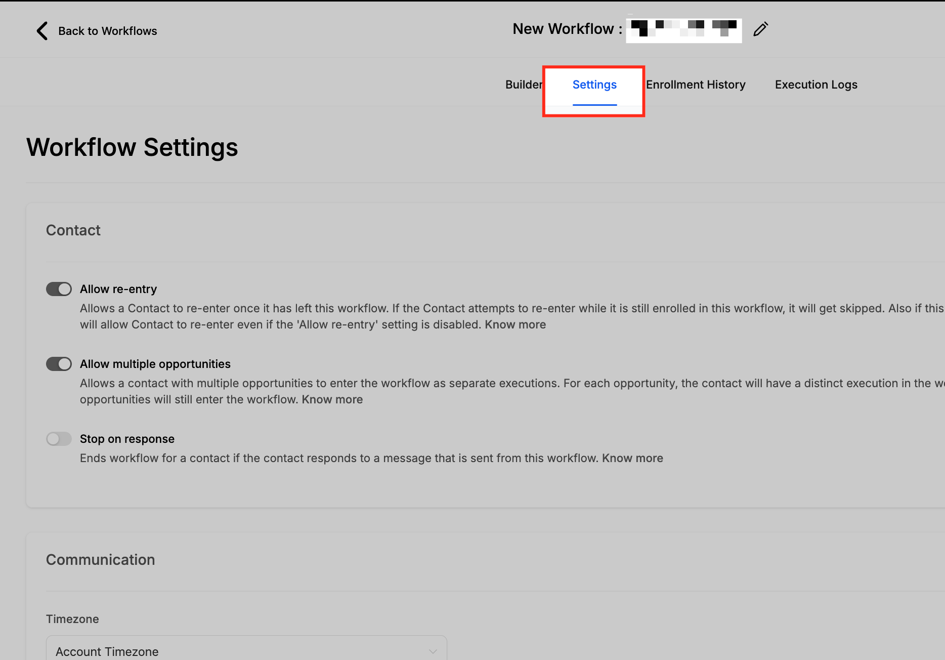 Properly configuring your workflow settings is crucial for creating effective and respectful automation. These options allow you to fine-tune the workflow's behavior to match your business logic and improve the contact's experience.